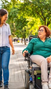 woman-with-disability-talking-while-walking-along